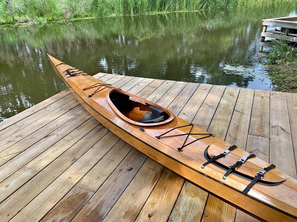 That is certainly a Pygmy Kayak but not positive which one. Looks like one of the Murrelet designs based upon measurements but not sure. If you post the pictures on the Friends of Pygmy Facebook page you will likely get the best answers. Also plenty of used boats posted there at pretty low prices. For what it is worth, I am not a fan of the Pygmys. I have built 11 kayaks and the one Pygmy (Osprey STD) was my least favorite to paddle. One thing for sure to watch is how much it weighs. The weights listed on the Pygmy website (which is still up even though the company is no longer in business) are wildly optimistic. The one I built came in 13 pounds over spec even though it was my 10th build. Bulkheads and hatches are not standard on Pygmys so that explains part of the weight difference but not all. As for buying a used homemade boat, it is buyer beware. The person who built it may have been a craftsman or maybe a hack who cut corners. In many cases, a “great deal” may end up costing more that a more expensive quality build. Pictured is the Osprey that I built for a non-profit.