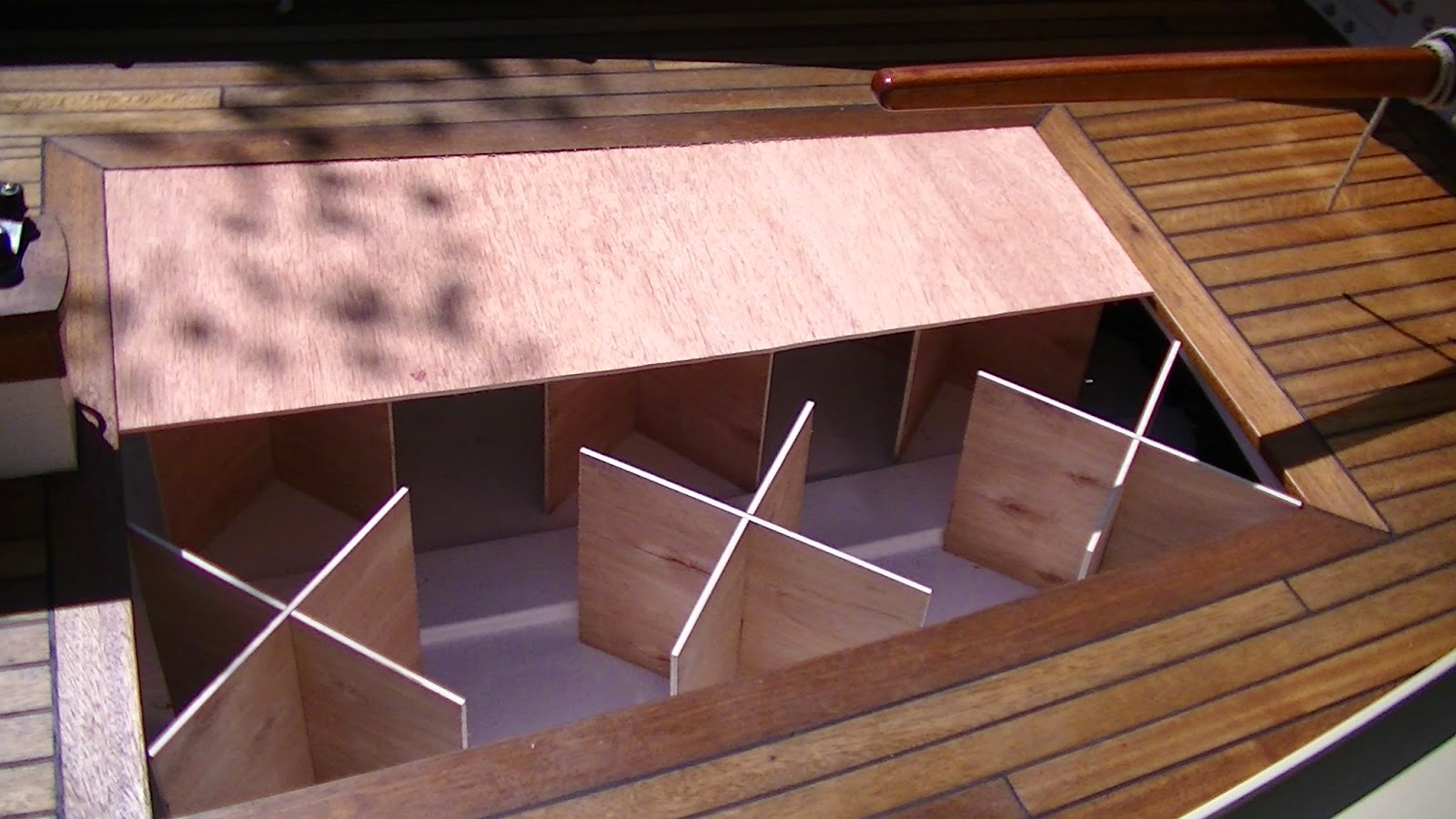 Loads of dry storage for camp-cruising. As you say, most of the time you'd pitch a tent on the beach. But if you had lightweight panels to span the footwell at the level of the seats, you could sleep aboard. (If people can sleep aboard Mirror Dinghies, they can definitely sleep aboard a Lake Union Swift.)