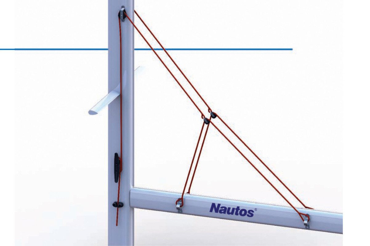 With the NED's sail lashed to the mast, I assume furling the sail is accomplished by simply folding the boom up against the mast, right? In that case, neither lazyjacks nor topping lift would be wanted, though you might want to rig up a sort of brailing line running from a padeye maybe halfway up the mast, down through a fairlead at a matching point along the boom, back up to a small block rigged opposite the padeye on the mast, thence down to a cleat. That'd create some extra spaghetti, but it's simple enough that it might prove worth the trouble for quickly getting the mainsail and boom out of the way for rowing, providing there wasn't a snootful of wind blowing.
