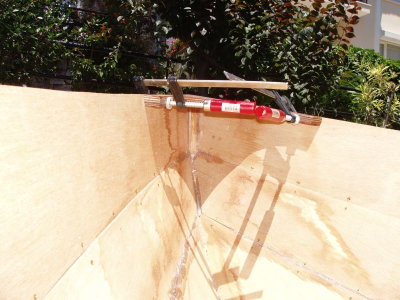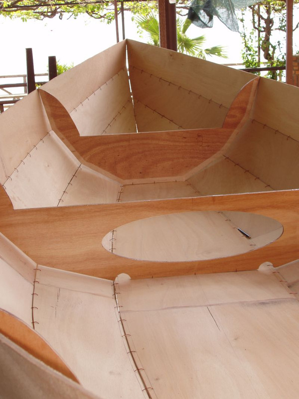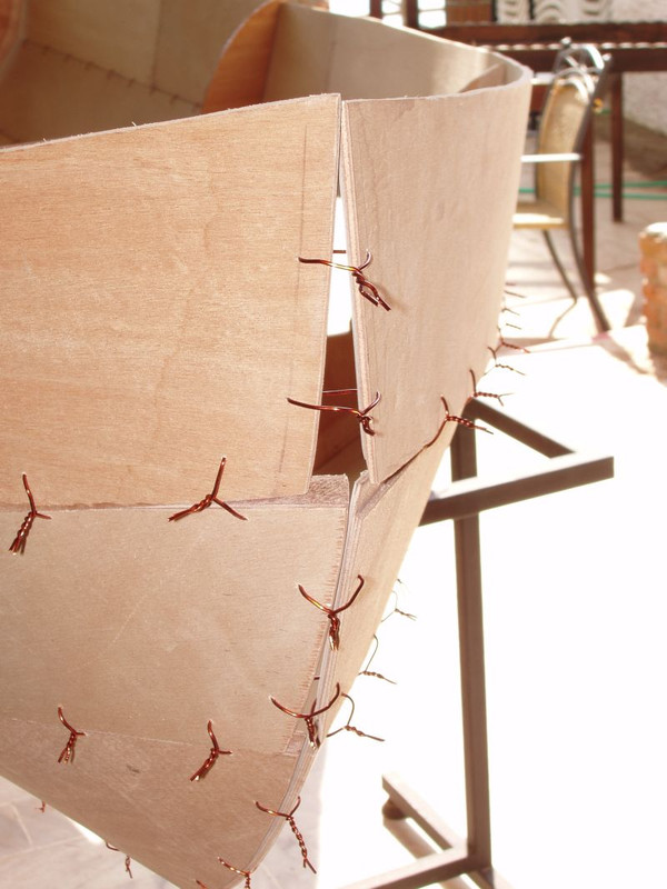 I did a lot of fettling and used a lot of copper wire to get the top panels to close up but failed miserably. I was building from plans so it's possible my cutting was at fault but whatever, I wanted a boat and wasn't going to be put off by a couple of panels not coming together. So I found a solution.