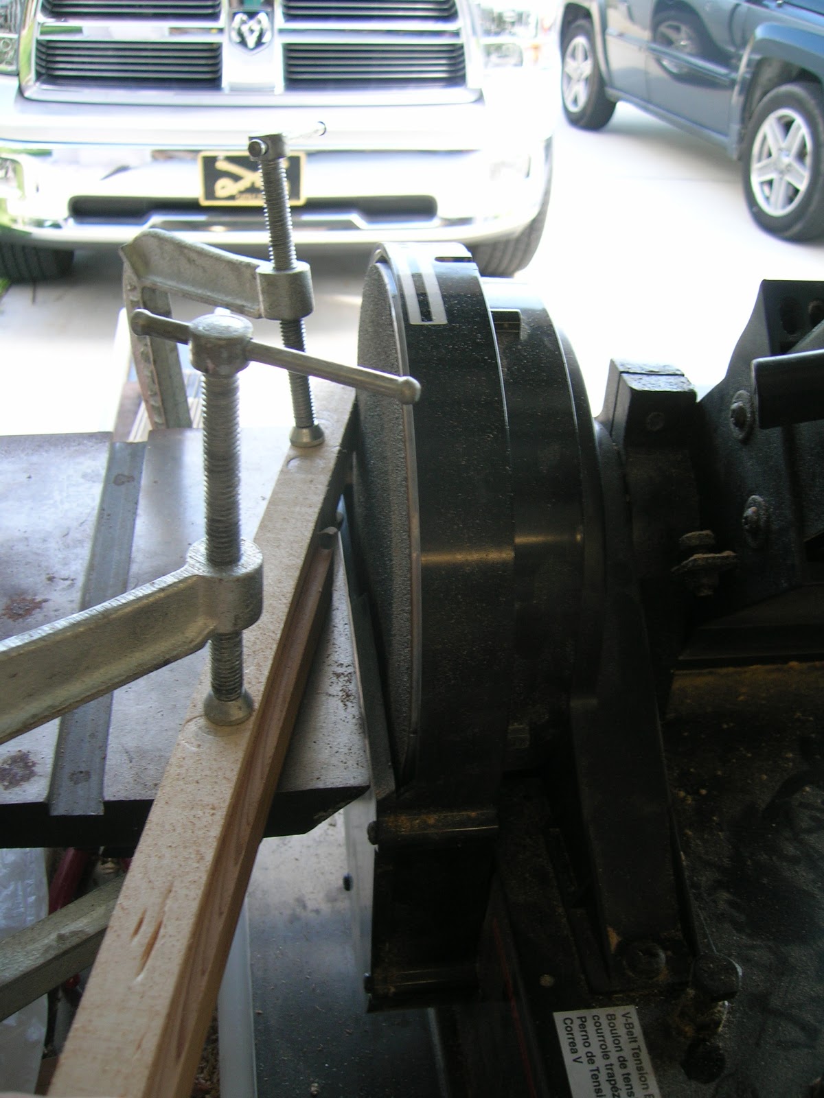 I used a sanding station disk with a 1 to 7 ratio scarf joint. I used a board as a straight edge clamped to the little sanding disk table at the 1 to 7 ratio.